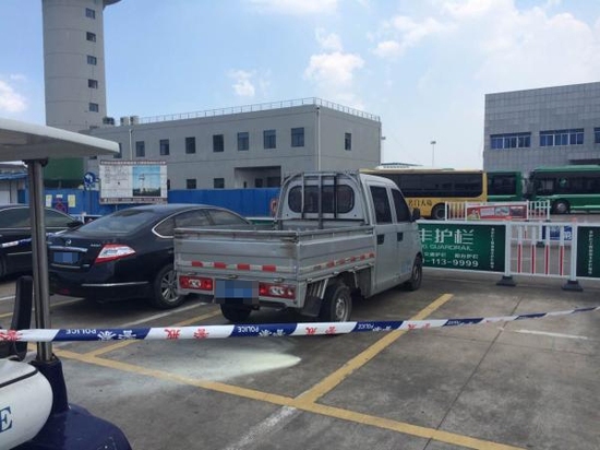 一位不愿透露姓名的機場工作人員告訴澎湃新聞,這輛貨車的車主就是在當?shù)刈鲣X合金門窗生意的翟金順,案發(fā)后被警方發(fā)現(xiàn),隨即用警戒線隔離。