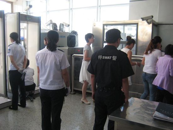 呼和浩特 鐵路公安局、呼和浩特鐵路公安處集寧南站派出所嚴(yán)密安檢措施,對進站旅客和行包采取“二次”手檢,根據(jù)人身容易藏匿物品的部位特點,自創(chuàng)“馬扎”式安檢方法,杜絕漏查、漏檢現(xiàn)象的發(fā)生,具體做法如下:旅客逐人通過進站口安全門檢查時,金屬安全門警示燈亮起,2名安檢員一左一右,站在被檢人側(cè)前方45度角的位置,同時對旅客進行全方位人身手檢,其中一人站立負(fù)責(zé)上身手檢,另一人坐在馬扎負(fù)責(zé)下身手檢。站立上身手檢順序從頭部、頸部、衣領(lǐng)、墊肩、左臂、左腋下、左前胸、右前胸、右臂、右腋下、腰部,然后請被檢人轉(zhuǎn)身對其背部進行檢查,依次由頭部、后肩、背部、后腰進行檢查。坐姿下身手檢順序從右腿、右腳踝、右腿后側(cè)、腿內(nèi)側(cè)至左腿、左腿后側(cè)、左腳踝進行檢查。